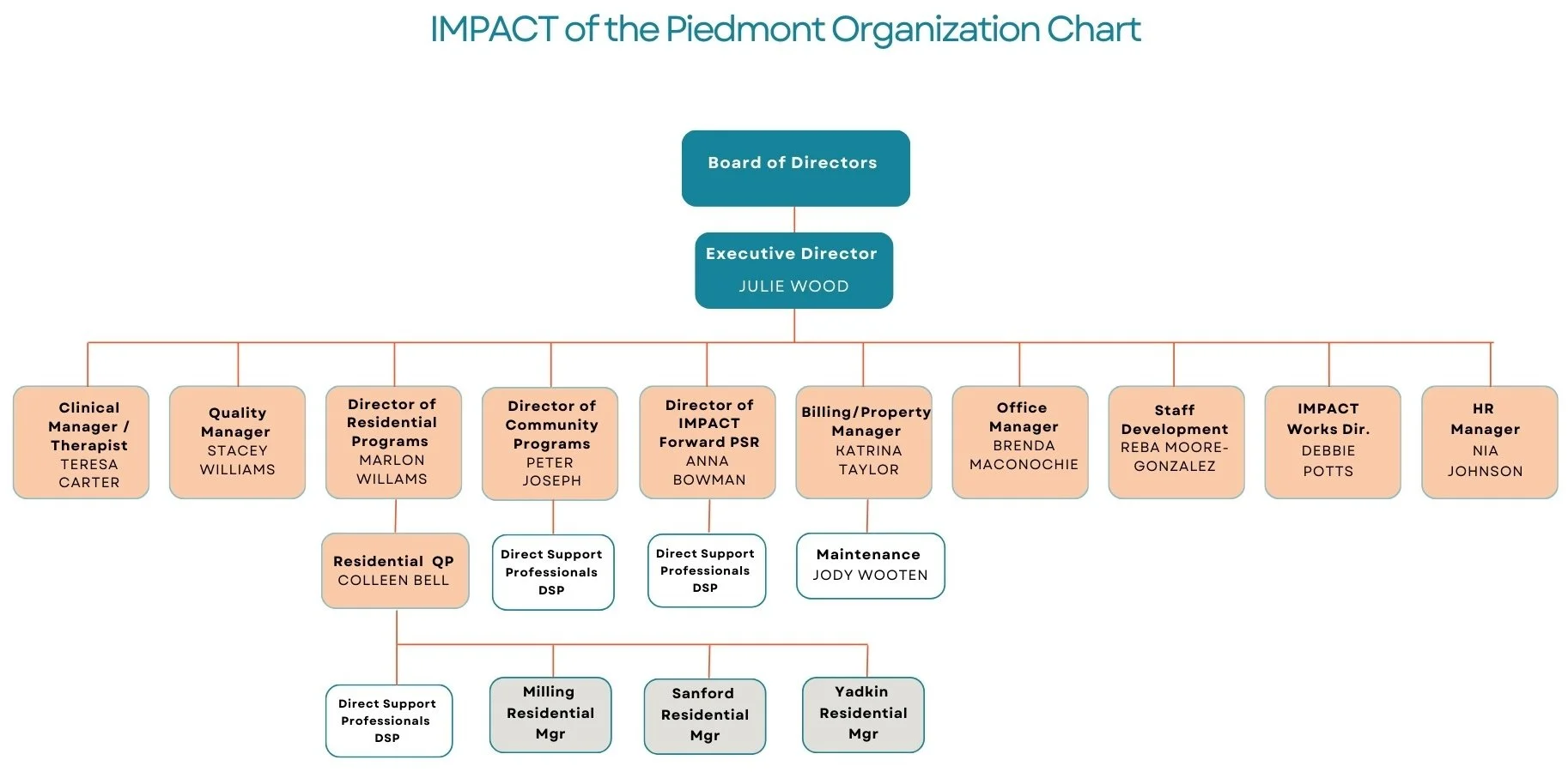 I chose IMPACT largely because of the leadership. I have great respect for DeeAnna and Julie and knew that I would be working for an agency who puts the individuals first. I also knew that I would have the opportunity for growth where I could use my skills to support the agency.
